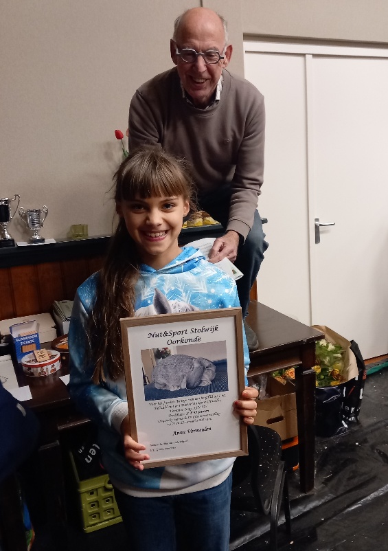 Prijswinnaar HEP-5a Beste konijn jeugdlid op 1 na: Anna Vermeulen met een